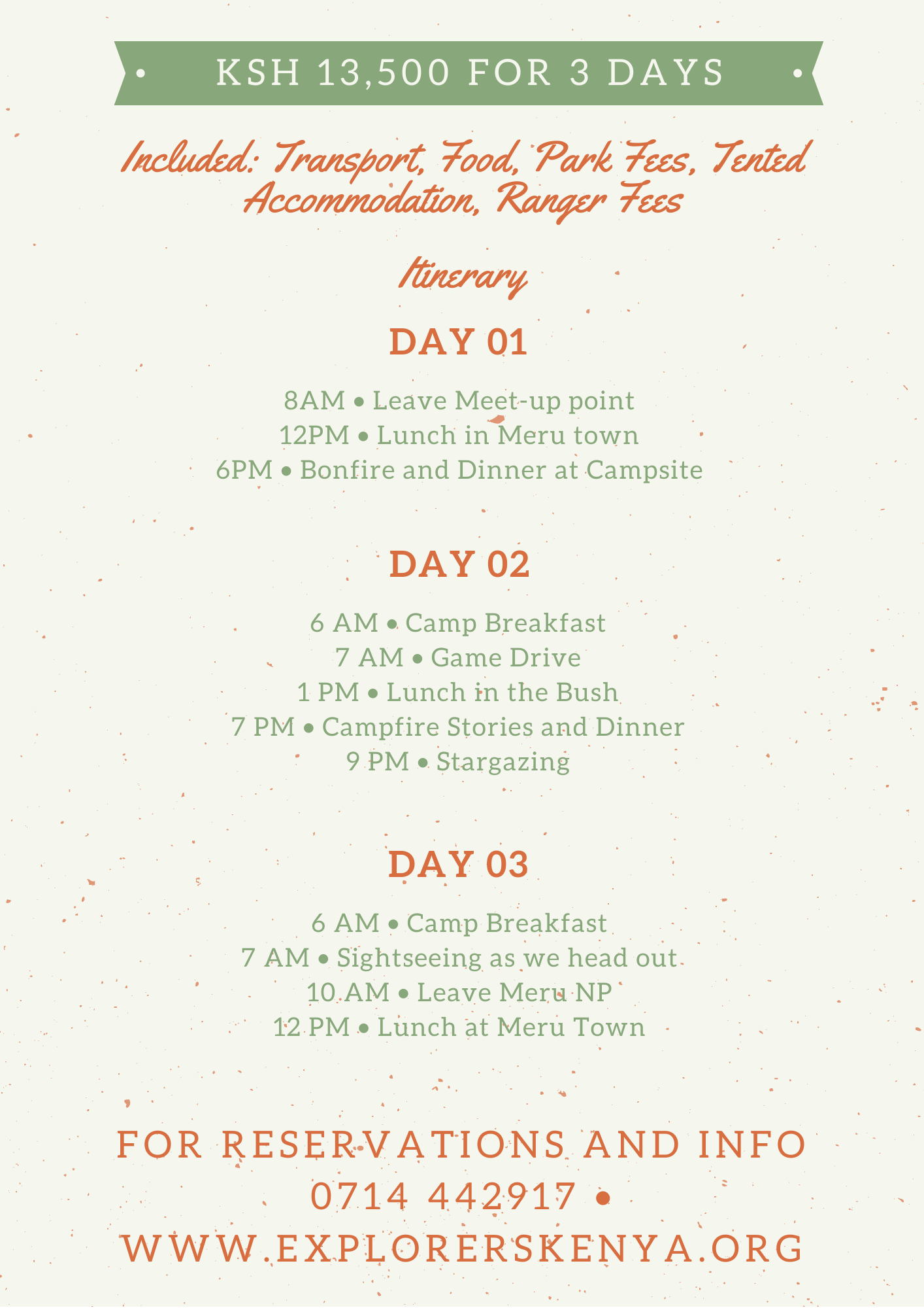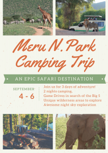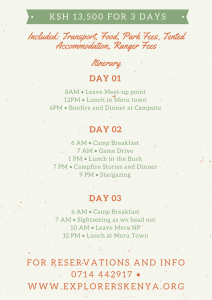 Join us on an exciting 3 days 2 nights camping trip to Meru National Park.
